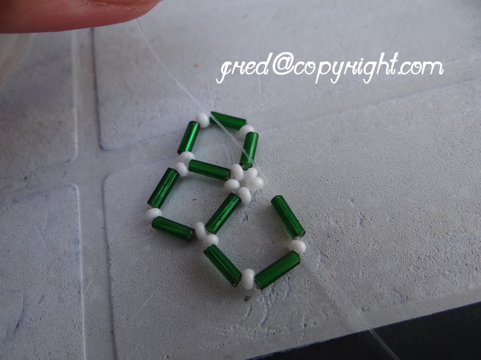 pour une etoile a 5 branches,il faut 15 perles tube (ici vertes) et des rocailles (blanches)